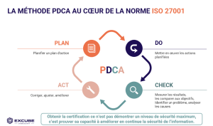 Illustration expliquant le fonctionnement du cycle PDCA au cœur de la norme ISO 27001.